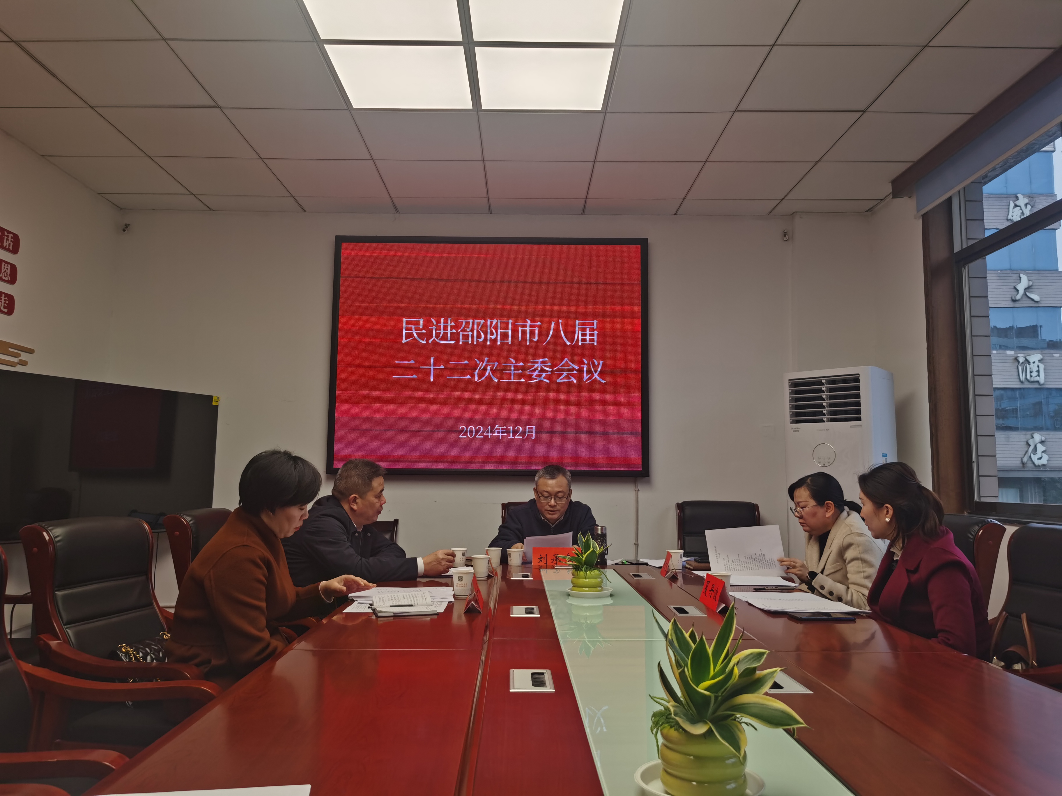 2024年12月23日上午,民进邵阳市委会八届二十二次主委会议召开。市政协副主席、民进邵阳市委会主委、邵阳学院副校长、市科协主席刘承智主持会议。专职副主委陈文佳、副主委杨喜国、夏丹波、黄一萍参加会议。