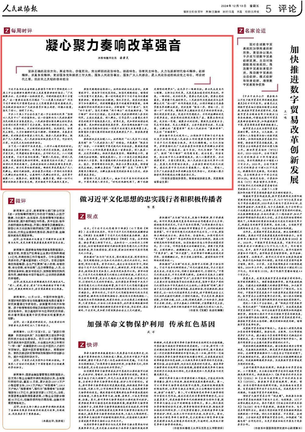 中共二十届三中全会凸显了进一步全面深化改革“坚持以人民为中心”的价值取向,这一价值取向与人民政协履职为民的根本宗旨高度契合。人民政协密切联系群众的优势在全面深化改革中得到了充分发挥。坚持正确的政治方向、舆论导向、价值取向,突出鲜明的政协特色、统战特色、协商民主特色,大力弘扬新时代奋斗精神、创新精神、求真务实精神,更好服务党和国家工作大局、服务人民政协事业、服务广大人民群众,是人民政协组织响应党之号召,呼应时代之需,回应民之关切的使命担当。