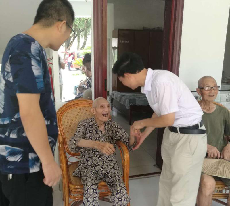 光荣院的抗美援朝老人紧紧抓着李国武的手,笑开了怀