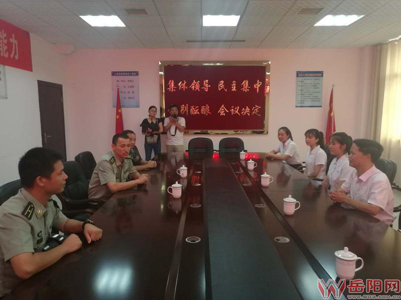 离开武警大队后,志愿者们又来到临湘市武装部。李国武与去年刚到任的政委王国峰一见如故,明亮整洁的会议室里不时传来爽朗的笑声,共话鱼水情。李国武说,自己坚持这么多年,最重要的是坚持这一份情谊,心中始终有对保家卫国子弟兵的敬意与热爱。