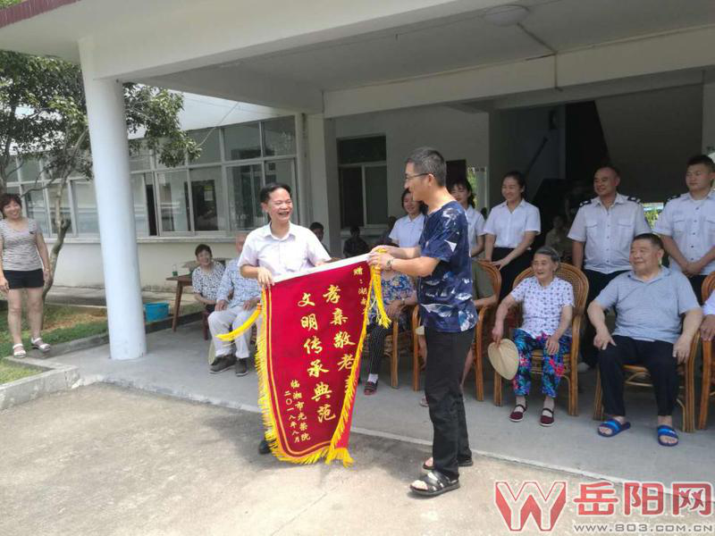对于临湘市光荣院里的老人们来说,李国武是常客。光荣院现在住着十几位孤寡抗美援朝老战士及老战士遗孀,他们现在平均年龄80多岁,很多事情老人们都记不住了,但对于李国武却记忆犹新。一位烈属熊奶奶甚至记得李国武曾经领着他们参观岳阳楼的情景。让李国武特别意外的是,光荣院居然给他准备并颁发了一面锦旗。李国武深情地对光荣院的工作人员说:“我们也只是每年隔三差五的来看望一下老人们,最辛苦最不容易的还是你们这些工作人员呐!”